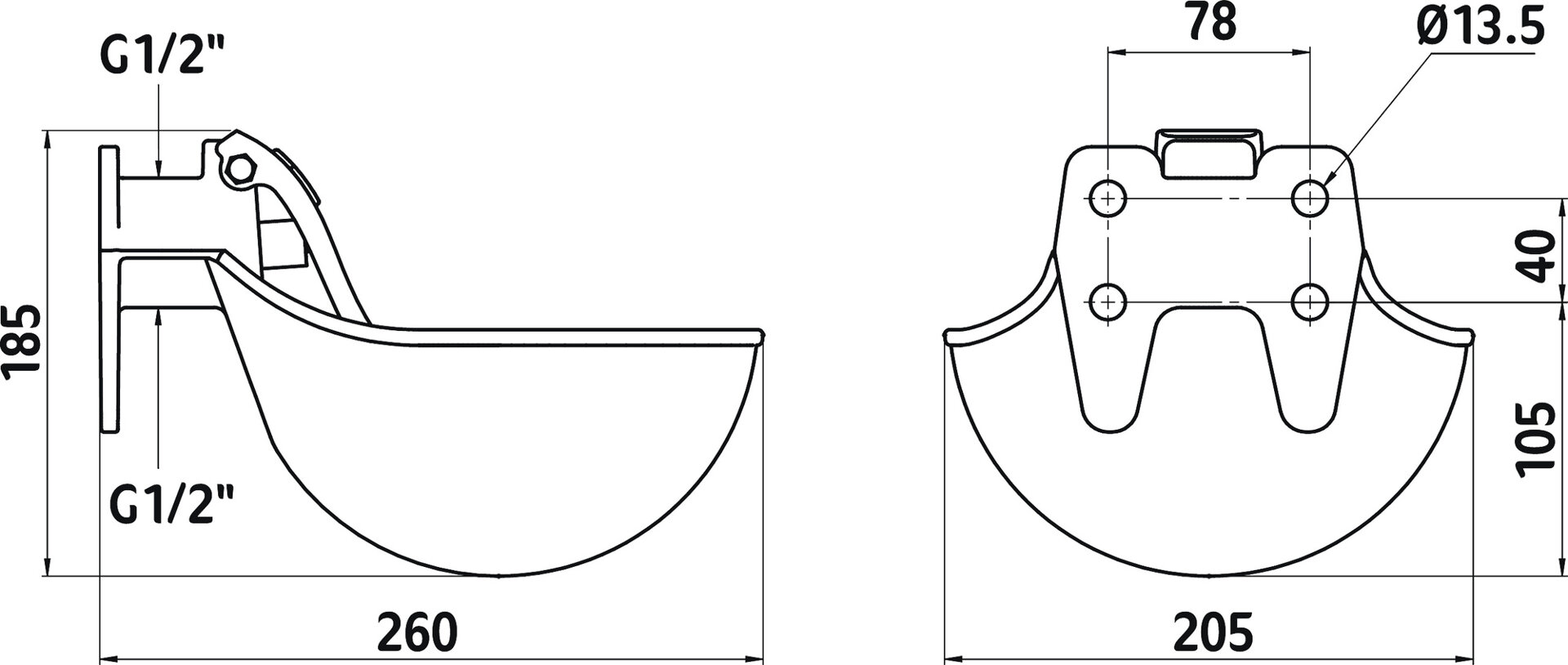 • prípojka vody 1/2" zhora alebo zdola